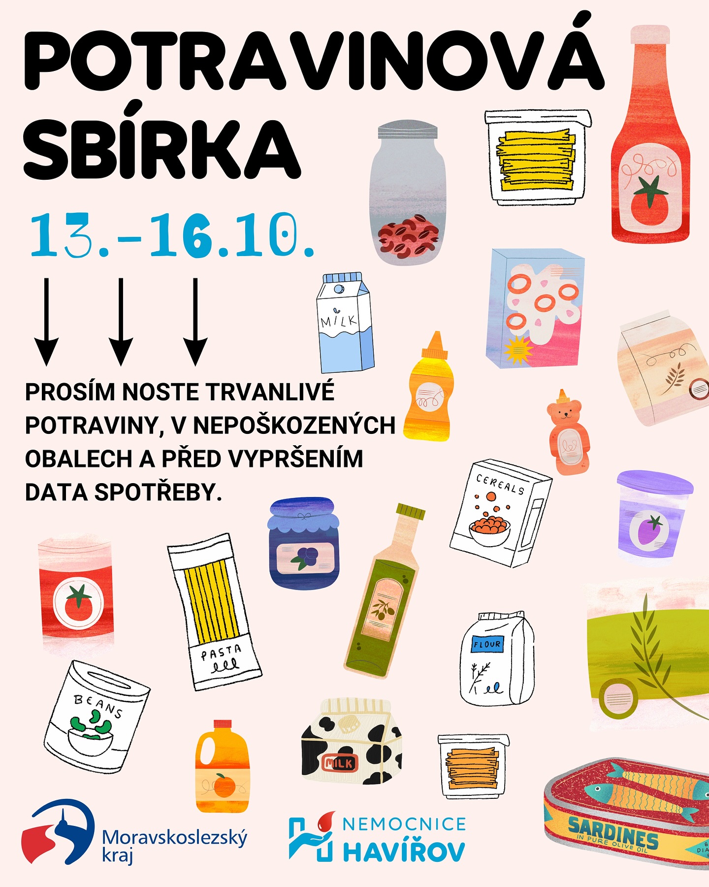 Naše nemocnice se rozhodla do této aktivity zapojit. Přidejte sek našim zaměstnancům a podpořte s námi lidi v nouzi. Konání celostátní Potravinové sbírky je letos naplánováno v týdnu 13. –16. 10. 2025, a vy v té době můžete nosit potraviny na odběrová místa, která budou nachystána v hlavní vstupní hale a v hale u Urgentního příjmu.