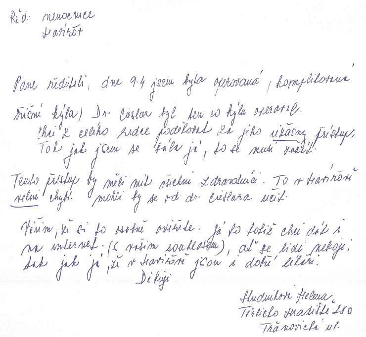 Pane řediteli, ještě jednou děkuji a přeji Vám pevné zdraví… Martina Křenková, Havířov